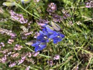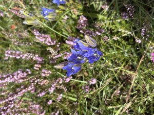 Am vergangenen Samstag fand die diesjährige Lungenenziankartierung am Morsum-Kliff statt. Lungenenzian (Gentiana pneumonanthe) ist eine besonders geschützte Art, die auf der roten Liste der gefährdeten Arten steht. Die kleinen Pflanzen werden in der Regel zwischen 15 und 40cm groß und kommen häufig mit 1-3 Blüten pro Pflanze vor. In selteneren Fällen tragen sie sogar bis zu zehn Blüten pro Pflanze. Leicht zu erkennen sind sie an den lialanen Blüten. Am besten wächst der Lungenenzian in wechselfeuchten, nährstoffarmen Böden, wie am Morsum Kliff. Gleiche Bedingungen gelten übrigens auch für die Heide, weswegen sie sich diesen Lebensraum teilen. Wir kartieren einmal jährlich , um den aktuellen Bestand aufzunehmen, da es sich um eine besonders geschützte Art handelt, die für die Artenvielfalt sehr bedeutsam ist. Insgesamt konnten wir auf einer Fläche von 4ha ca. 3000Lungenenzian-Pflanzen zählen.